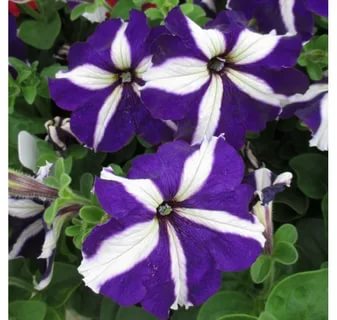 Серия Тритуния – результат скрещивания трех наиболее популярных сортов крупноцветковых петуний (Ультра, Шторм и Браво). Сильноветвящееся, компактное растение с обилием крупных цветков, высотой 20-25см, станут отличным украшением вашего сада или балкона. Цветки бело-фиолетовые, диаметром 9-11см, буквально осыпают куст, делая растение заметным издалека. Цветет обильно с июня до заморозков. Растение свето- и теплолюбивое, засухоустойчивое. Отличается устойчивостью к неблагоприятным погодным условиям. Быстро восстанавливает цветение после сильного дождя. Используют для клумб, рабаток, балконных ящиков и контейнеров
