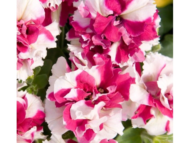 Прекрасная смесь многоцветковых, махровых гибридных петуний восхитительных окрасок. Очень рано вступает в цветение. Эта гибридная форма петунии имеет объемный компактный и ветвистый кустик высотой 25-30 см. Цветки многочисленные 5,5-7,0 см в диаметре, похожи на цветки гвоздики, с прочной фактурой, не страдают во время дождей. Цветет с конца мая весь сезон. Украсит контейнеры, вазоны, балконы, подоконники, рабатки, бордюры.